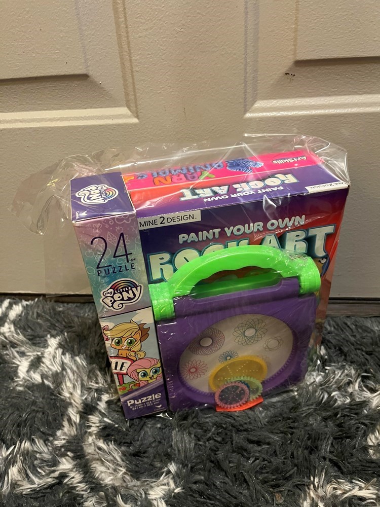 Paint your own rock, Spirograph, yarn animals, puzzle!
